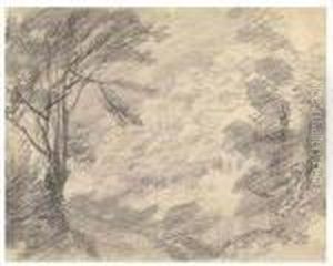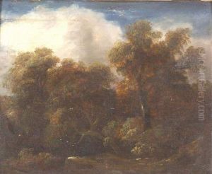 A Wooded Landscape With A Traveller Seated At A Fork In Thepath