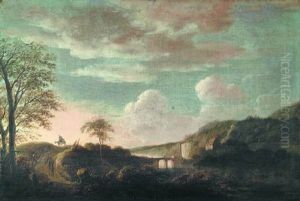 A Wooded Landscape With A Peasant, A Horse And Cattle