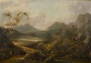 Wooded Rocky Landscape With Mounted Peasant, Drover And Cattle, And Distant Building