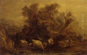 Drovers With Cattle At A Ford