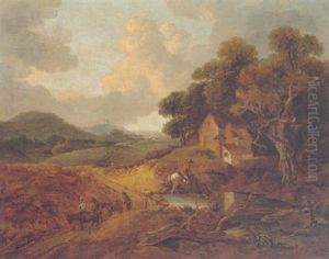 Mountainous Landscape With Cart And Figures