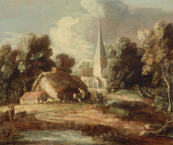 Bring the timeless beauty of Thomas Gainsborough's Landscape with cottage and church into your home with a handmade oil painting reproduction. Carefully recreated on canvas by skilled artists using traditional techniques, this piece captures the delicate brushwork, subtle light, and vibrant color of the original masterpiece. With museum-level quality and rich texture, it brings elegance and artistic depth to any space. Enjoy free shipping and make this masterpiece a part of your personal collection.