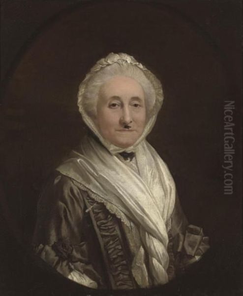 Portrait Of A Lady Of The Knight Family, Bust-length, In A Grey Beribboned Silk Dress With A White Shawl And Bonnet, In A Feigned Oval