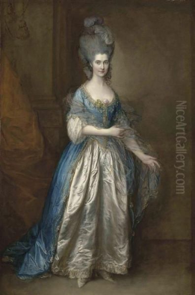 Bring the timeless beauty of Thomas Gainsborough's Portrait Of Mrs. William Villebois, Full-length, In Masqueradedress, With A Blue Gown And A Lace-edged Satin Skirt, Holding Adiaphanous Wrap, Beside A Pilaster into your home with a handmade oil painting reproduction. Carefully recreated on canvas by skilled artists using traditional techniques, this piece captures the delicate brushwork, subtle light, and vibrant color of the original masterpiece. With museum-level quality and rich texture, it brings elegance and artistic depth to any space. Enjoy free shipping and make this masterpiece a part of your personal collection.