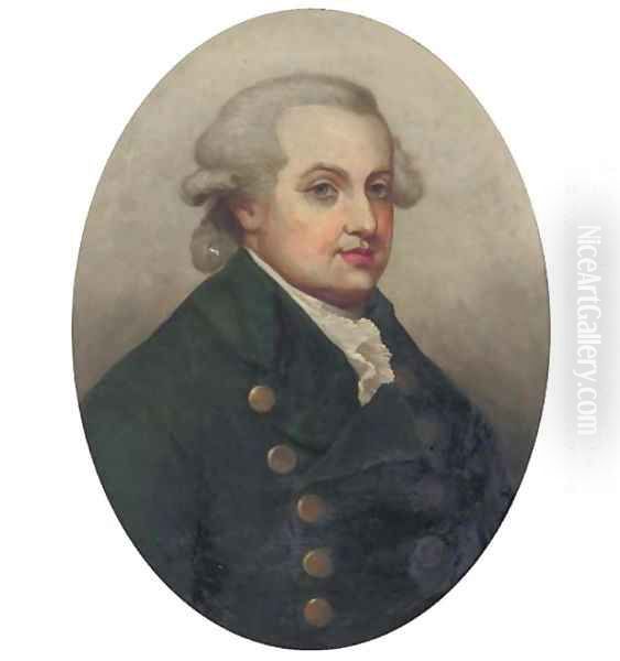Portrait of the 11th. Viscount Mountgarret (1745-1793), bust-length, in a green jacket and white cravat, painted oval