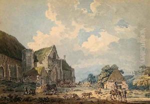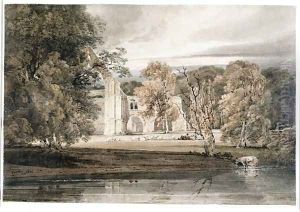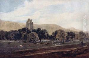 Kirkstall Abbey, Yorkshire, from the Bridge; Morning