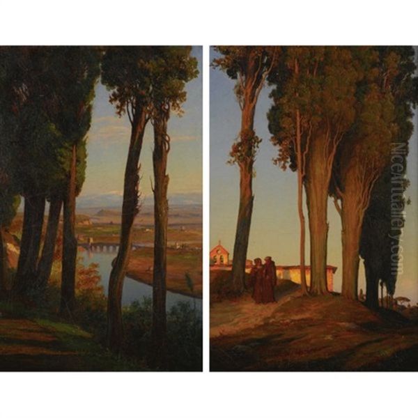 Cypresses On Monte Mario Near Rome (+ Cypresses And Convent At San Miniato Near Florence; Pair)