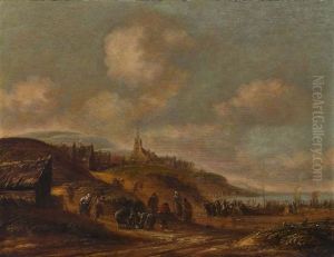 A River Passing Through A Village, With Travellers On A Road To The Left (+ A River Landscape With Villagers Making Merry At A Fair; Pair)