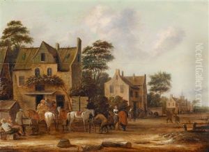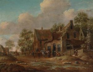 Peasants Drinking Before A Country Inn; And Horsemen Before A Country Inn (pair)