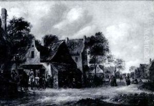 A Village Street Scene With People And Horses