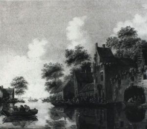 A River Landscape With Peasants By A Cottage On The Bank