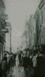A Winter Landscape With Skaters Outside The Gates Of A City