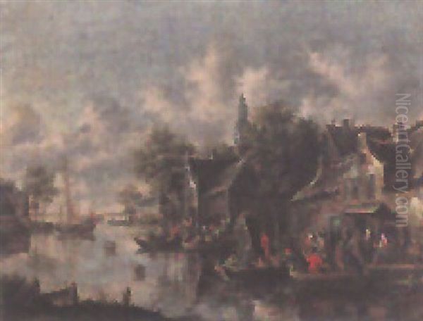 Hollandische Seelandschaft Mit Dorf Und Booten