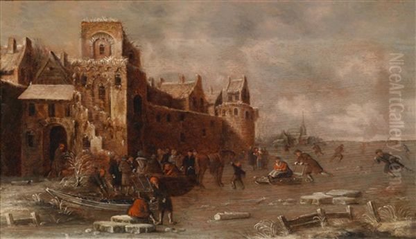Hollandische Winterlandschaft Mit Eislaufern Vor Einer Stadtmauer
