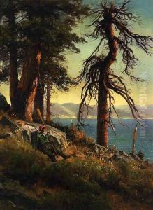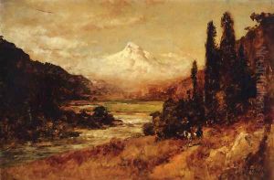 Rider On Horseback & Two Figures In View Of Mt. Shasta From Castle Lake S L/l: T. Hill O/c 16x24
