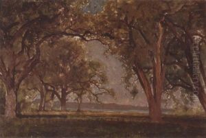 Landscape With Oaks And A Lake Beyond