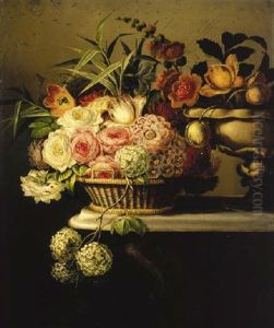 A Dainty Morsel/genre Scene With Chick And A Mound Of Strawberries
