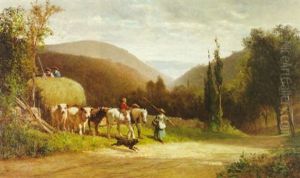 Farmer With An Ox-drawn Cart In A Country Landscape