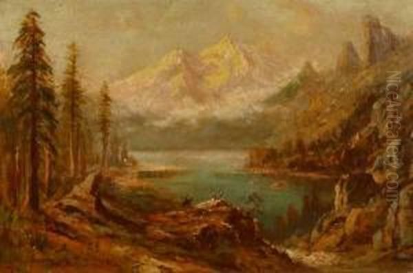 Rider On Horseback & Two Figures In View Of Mt. Shasta From Castle Lake S L/l: T. Hill O/c 16x24