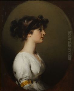 Portrait Of Lucy Meredith In A White Dress With A Paisley Sash