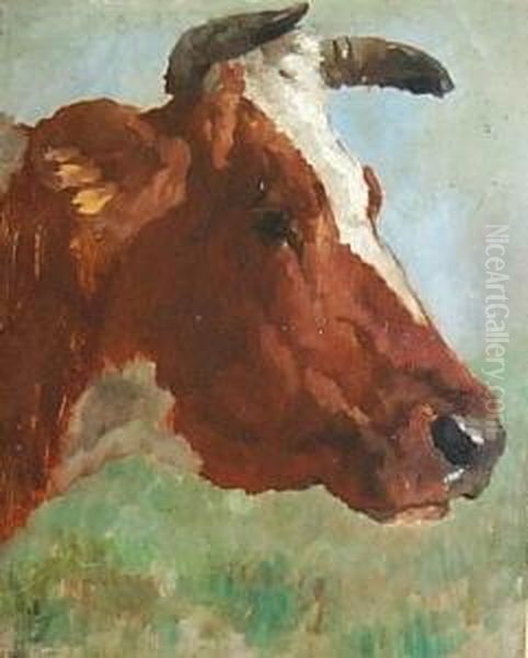 Kopf Einer Braunen Kuh Mit Weiser Blesse. Unten Links Stempel "thomas Herbst Nachl."