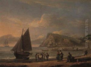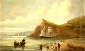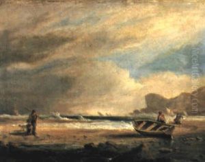 Coastal Scene With Figures Pulling In A Boat To Shore