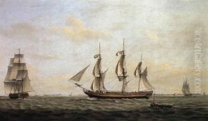 A Lugger, A Man O'war And Other Shipping Off A Coastline
