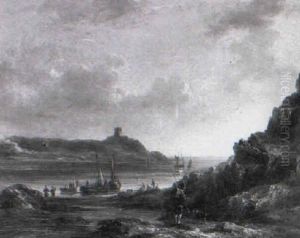 Fisherfolk On The Shore At Dover With The Castle