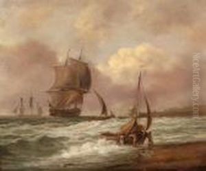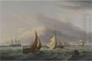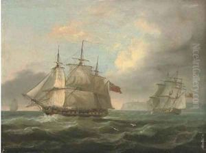 A 32-Gun Frigate Taking In Sail And Other Shipping Off The Coast