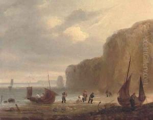 Hauling In The Lugger To Land The Catch Atbabbacombe Bay