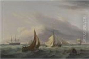 Ships Of The Fleet Off Portsmouth, With Adeparting Frigate In Open Water