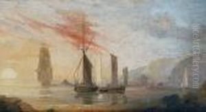 A Fifth Rate Of 44 Guns In Two Positions Off Dover With Other Shipping Nearby