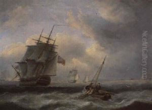 Figures In A Fishing Smack With A Two Masted Mediterranean Tartan And Frigates Off Corrunna, North West Spain