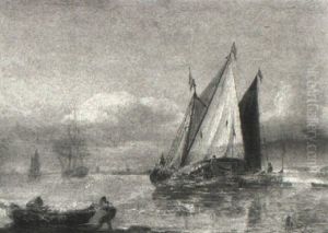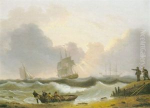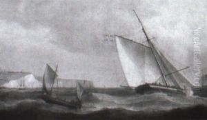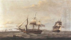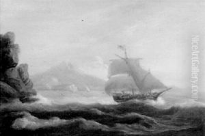 An Armed Cutter Approaching A Frigate Making Sail Off Shore