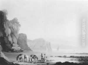 Coastal Scene With Figures Pulling In A Boat To Shore
