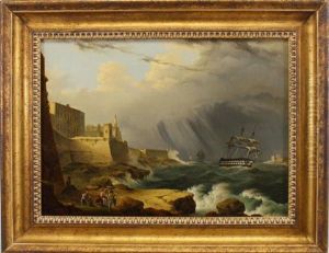 A British Warship And A Maltese Xebec In The Straits Of Gibraltar