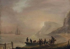 Fisherfolk Unloading The Catch At Low Tide, Shaldon Ness, Devon