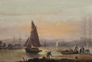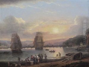 Shipping In Harbour At Sunset And Along The Coast With Fisherfolk Hauling Nets
