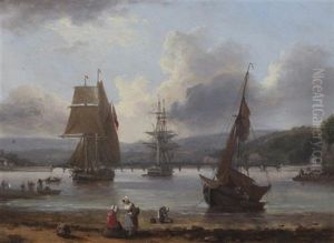 A Frigate In Three Positions At The Mouth Of The Thames Estuary, With A Naval Cutter And Other Coastal Craft Beyond