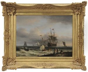 An East Indiaman And Other Shipping In The Downs Off The North Foreland (+ Warships Lying At Anchor With One Getting Underway And Another Coming In To The Anchorage (both Illustrated); Pair)