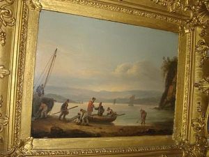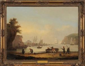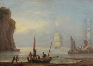 Coastal Scene With Figures Embarking A Boat