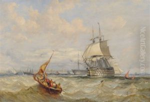 Sailors In A Rowing Boat Approaching A Sailing Ship, Others Beyond