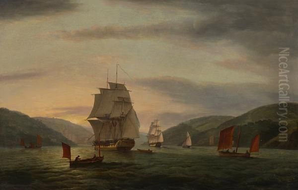 A Frigate Lugger And Merchant Ship In Dartmouth Harbor