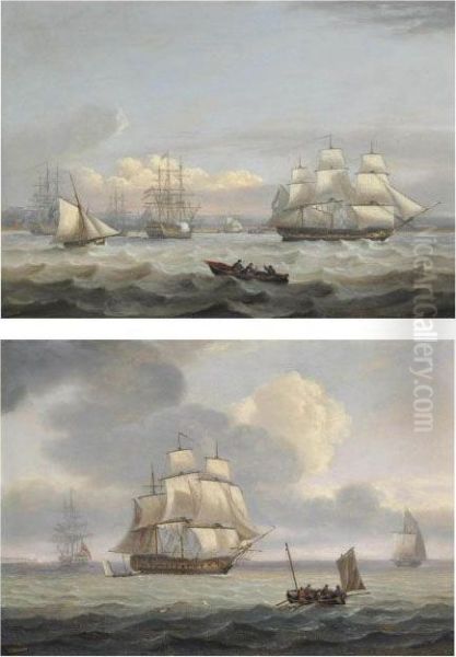 A Squadron Of The Blue Lying Off Portsmouth With A Flagship Signalling To A Passing Royal Navy Two-decker