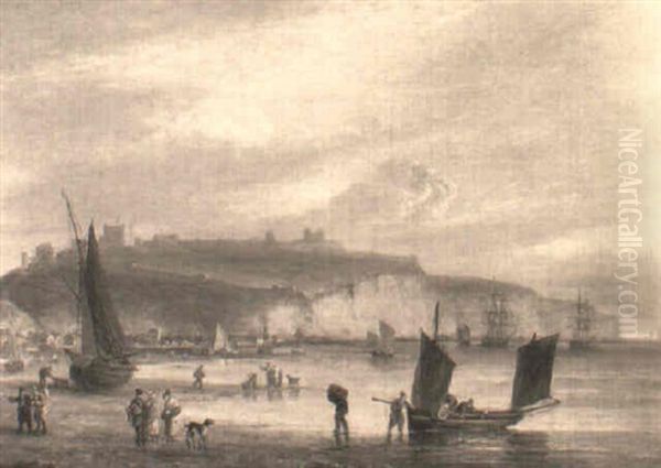 Fisherfolk On The Shore At Dover With The Castle