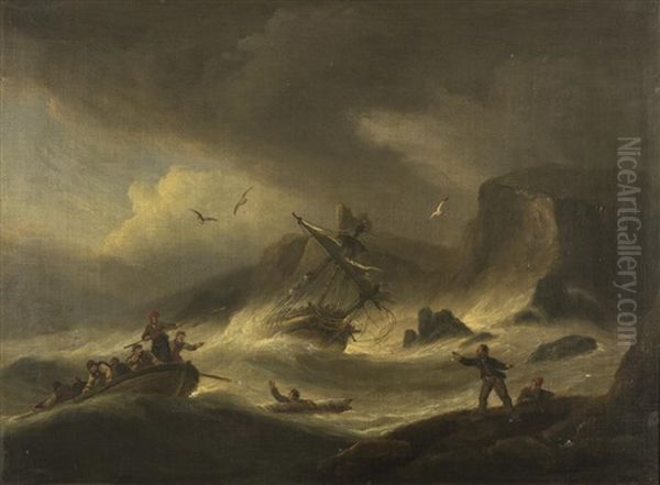 Untitled - Shipwreck Oil Painting by Thomas Luny