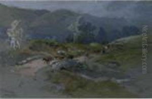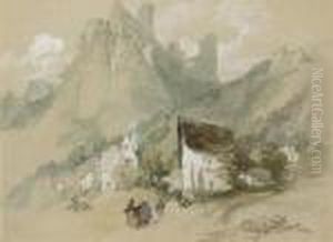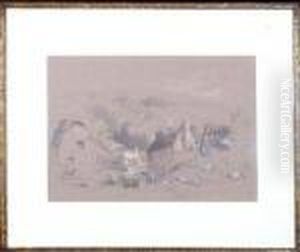 Inscribed To Mount From A Sketch Book (figures Walking In A Hilly Landscape)