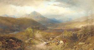 Figures On A Bridge, Mountains Beyond