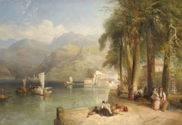 Figures On The Bank Of An Italianate Lake