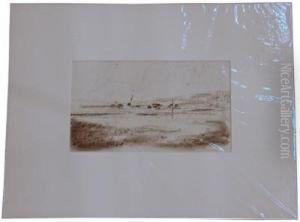 Landscape; Black Chalk On Blue Laid, 17.5x24cm